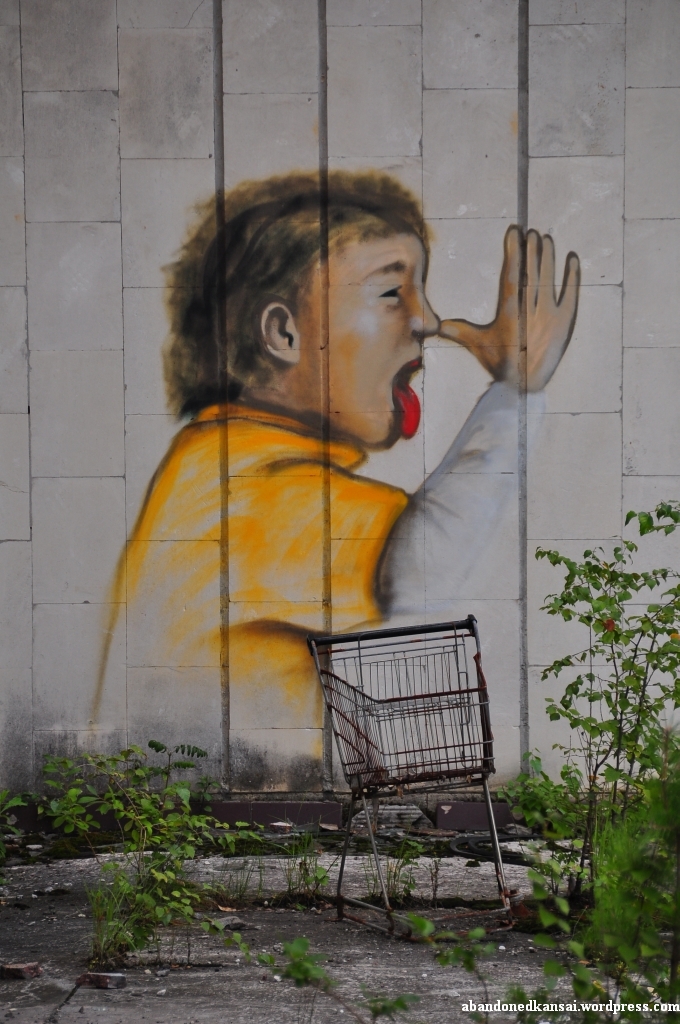 Nowadays, after almost 25 years (the anniversary of the disaster will be in April) it is relatively safe to enter Pripyat. Since the isotopes released during the accident were rather short-lived (and due to the work of 800,000 so-called “liquidators”) the radition in Pripyat barely ever exceeds one microsievert per hour – one exception would be the basement of the hospital were were strongly advised not to enter. Aside from natural decay the already mentioned liquidators were the main cause of destruction / vandalism in Pripyat. When new buildings in the not so severely contaminated Chernobyl were constructed, the planners weren’t able to provide enough furniture, so the liquidators took it from Pripyat since it wasn’t needed there anymore. So while most buildings in Pripyat are still standing a lot of them are actually quite empty, some vandalised by frustrated workers – other than that you can find a couple of graffiti all over the town, done by a French guy a couple of years ago. Other than that it’s 25 years of natural decay…