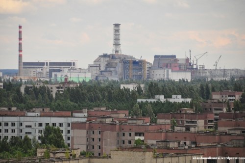 Zone Of Alienation – Pripyat: Apartment Building at Lesya Ukrainka Street 56 » Background: CNPP, Foreground: Pripyat – Cause & Consequence