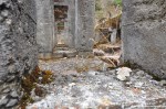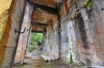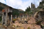 At its zenith about 1,500 people worked at the Tsuchikura Mine, sadly there is nothing left of the mining town surrounding it. All there is to see today is a couple of concrete constructions on a steep slope and a roofless house towards the top of it – probably the previously mentioned sifting plant, once wainscoted by wooden buildings. (If you are interested in some old photos please *click here* – the text there is in Japanese as this is the first time somebody writes a bit more about the Tsuchikura Mine in English on the internet.)