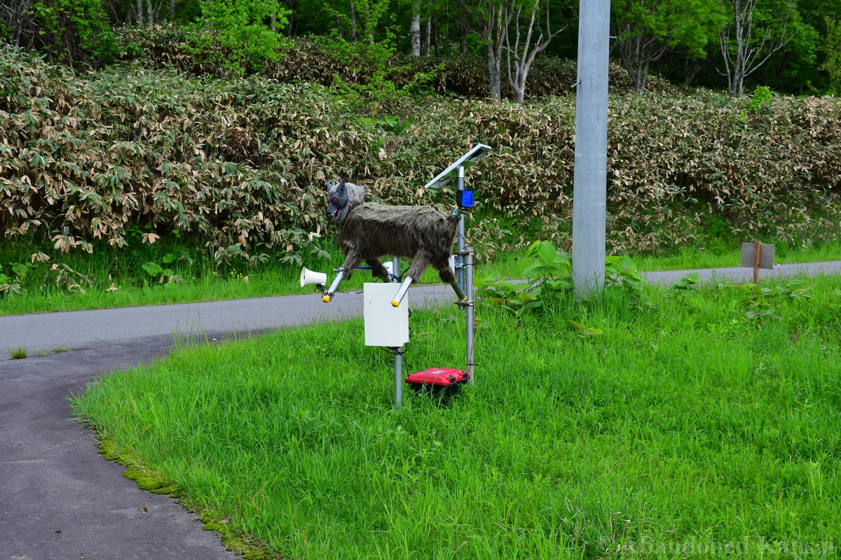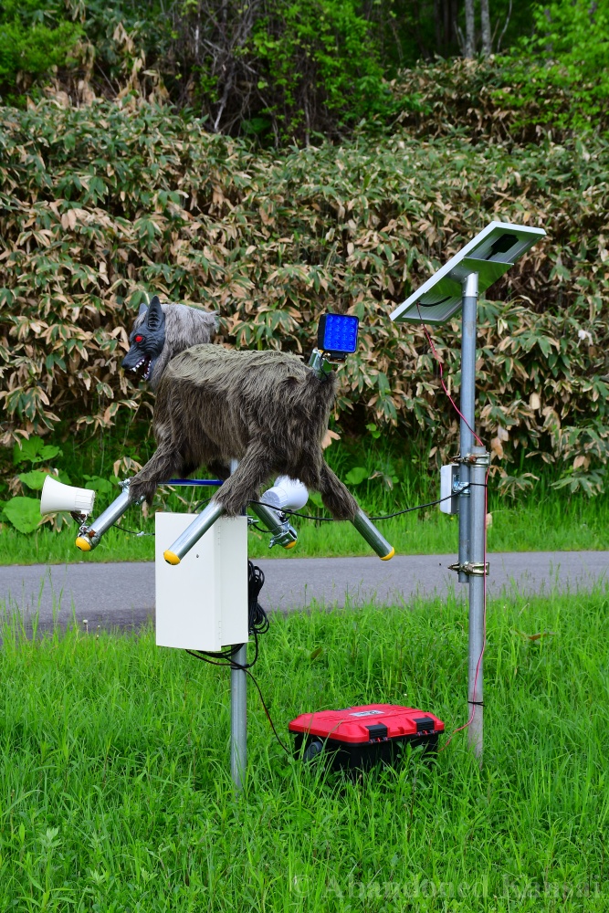 Well, the sound obviously was pre-recorded and came from a speaker, so at least I wouldn’t have to deal with some animal torturing hillbilly. When the most messed up animatronics I have ever seen finally stopped after 20 or 30 seconds I carefully had a closer look. Upon inspection the setup apparently consisted of a solar panel connected to a battery, connected to the screaming furry fella, with a control unit and two speakers underneath. I was intrigued, but nothing happened for a while…