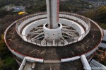 Too bad the life of the now abandoned revolving observation tower was as short as that of the adjunct hotel. Little is known about the history of the unfortunate pair, but it seems like the place was the another product of the real estate bubble. From 1978 till 1988 the Great Seto Bridge (also known as Seto-Ohashi Bridge or the Japanese name Seto Ōhashi / 瀬戸大橋) was constructed… and some people decided that a bridge like that needs a place to welcome all the visitors who would come from all over Japan to have a look – ignoring the fact that the area already had some hotels due to the Washuzan Highland amusement park nearby.