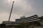 The more likely story is that a private investment group burned quite a bit of money when they opened the hotel and tower in 1988. They named the place after one of their two golf courses and were making big bucks at the time with their 400 seat seafood restaurant and two cruise ships. It was one of the companies that dreamed of making the area a “Japanese Venice”, actually buying large quantities of land on small islands like Yoshima. Since the Seto Sea boom bursted along with the Japanese asset price bubble (1986 to 1991) the La Rainbow Hotel & Tower soon faced financial issues and was closed for good in 1997 – something the internet and our taxi driver to a second location agreed on.