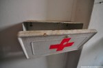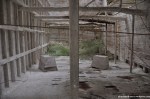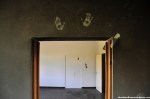 In the afternoon, when we left the fire station, the weather started to turn drastically. The sunshine was gone and dark grey clouds approached quickly. While we were making our way to the abandoned tower the wind sped up massively – to my favor as I should find out minutes later. I just finished shooting the tower building when a wall of rain came closer quickly and before I had the chance to take shelter it poured liked I was standing in the shower; a first class cloudburst. At that time I was close to the eastern wall of the tower, so I pressed myself against the high wall while the wind was blowing so hard that it actually blew the rain over my head. About 15 minutes I was standing there, hoping for the wind to continue and the rain to stop. When the heavy rain turned into light drizzling I started to look for Gil, who found shelter in a nearby building I assumed was inaccessible. That building was boarded up (almost) completely and its massive walls made me wonder right away what it was used for. Sadly it was pretty much empty, nevertheless we found some interesting items – a sleeping bag and other signs of a homeless person being there for a while, a perforated cardboard character and some documents with rather sensitive information; like special travel orders, granting individuals the permission to hand-carry a M16 rifle. I have no clue how those documents escaped the shredder, but I guess I better refrain from posting photos since each sheet of paper contained several names including ranks and addresses…