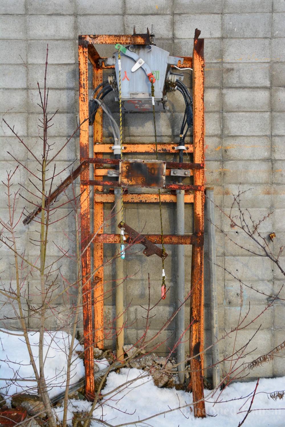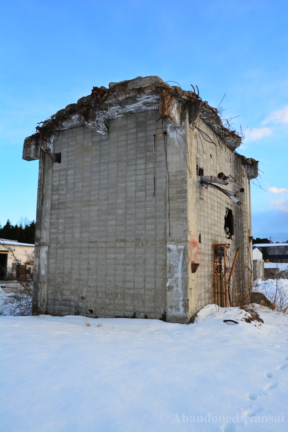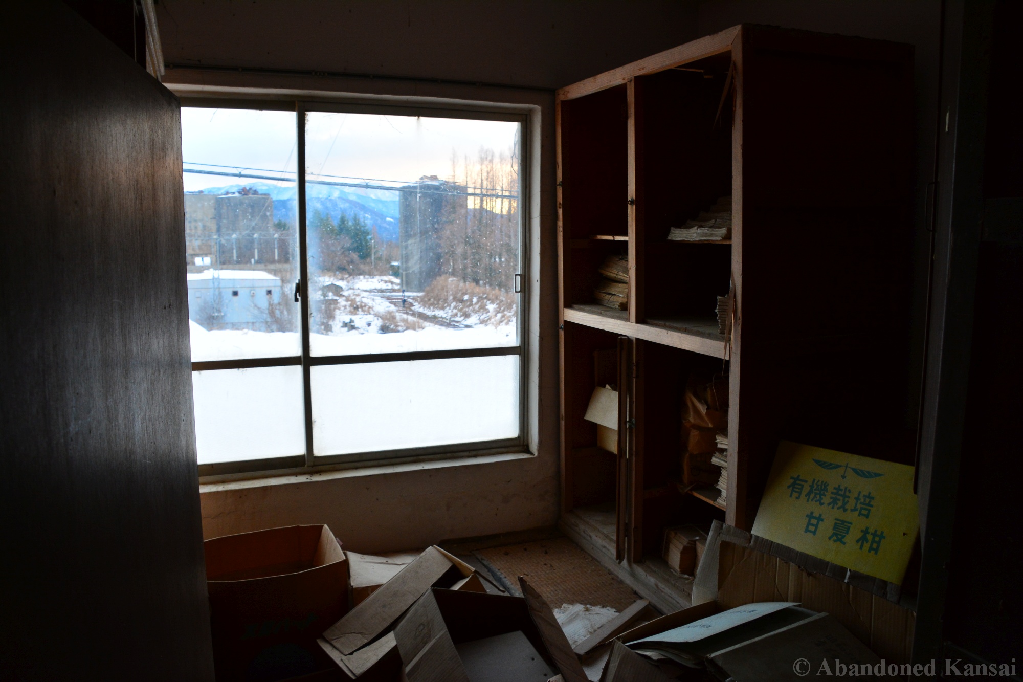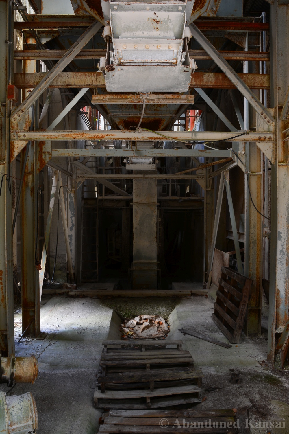Usually I don’t do revisits. They bore me, they bore you, they don’t do well here on Abandoned Kansai. But there are exploration days when I’m not in charge of the location selection, which sometimes is a good thing (as I get taken to places I didn’t even know existed) and sometimes is a bad thing as I’m stuck at places I don’t like or already have documented extensively. In early 2018 I was on the road with a large group of people (the largest ever, almost a dozen explorers in two large cars) and it was really chaotic as nobody wanted to take the lead (or listen to the only gaijin they apparently considered pretty much dead weight), so there were endless time-consuming consensus discussions, but not much exploring – and of course in the afternoon we ended up at the almost touristy *Sumitomo Osaka Cement Factory, which I had explored about 4 years earlier on a late summer morning*. Seriously annoyed by the inability of the group to make decisions I teeth-gnashingly got out of the warm car and into the mid-winter cold. (While there is no winter in central Osaka, you can definitely get to some snowy areas in day trip range. Not real winter like in Hokkaido, but at least it’s worth putting on a jacket…)