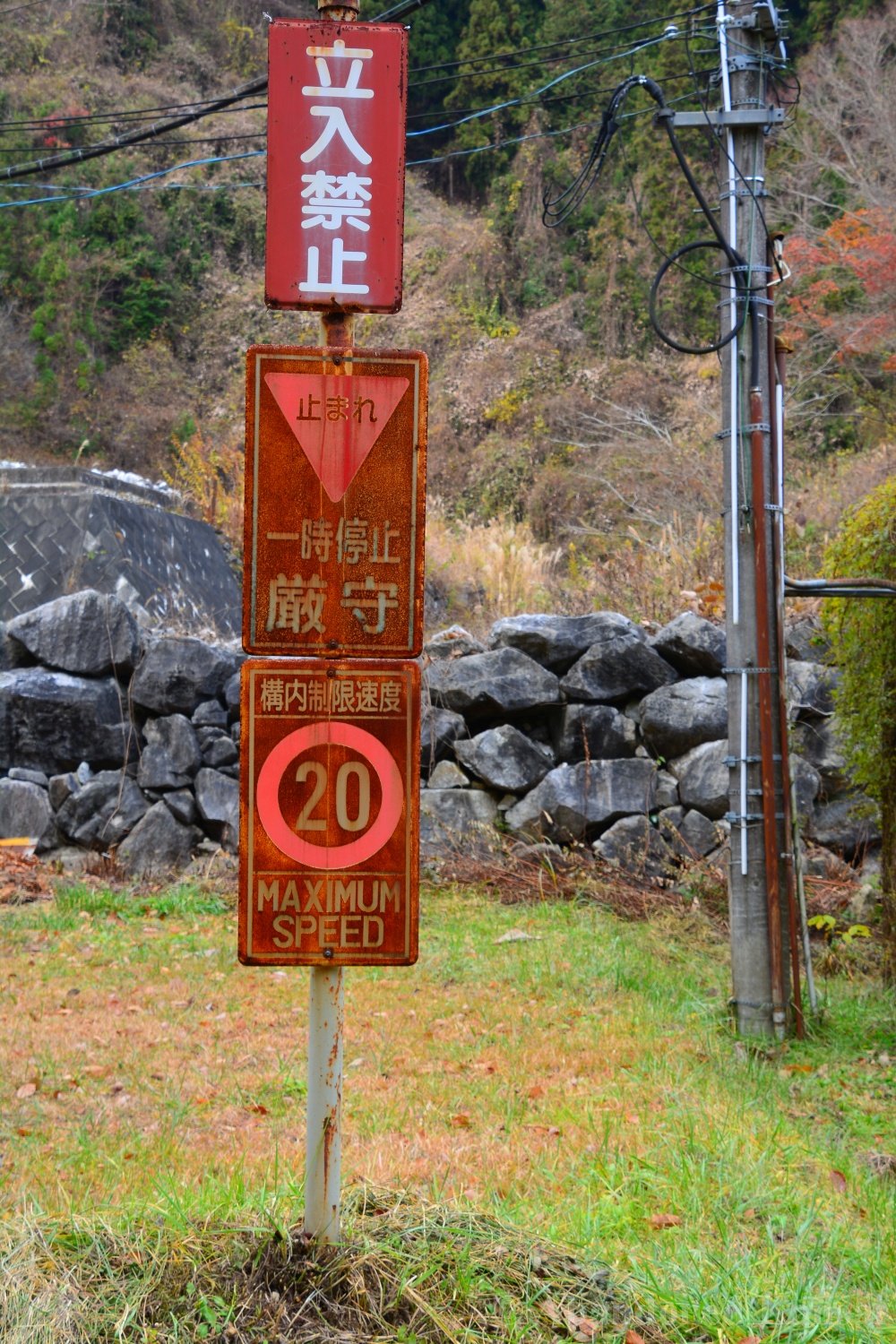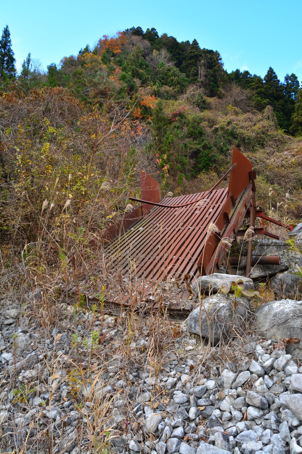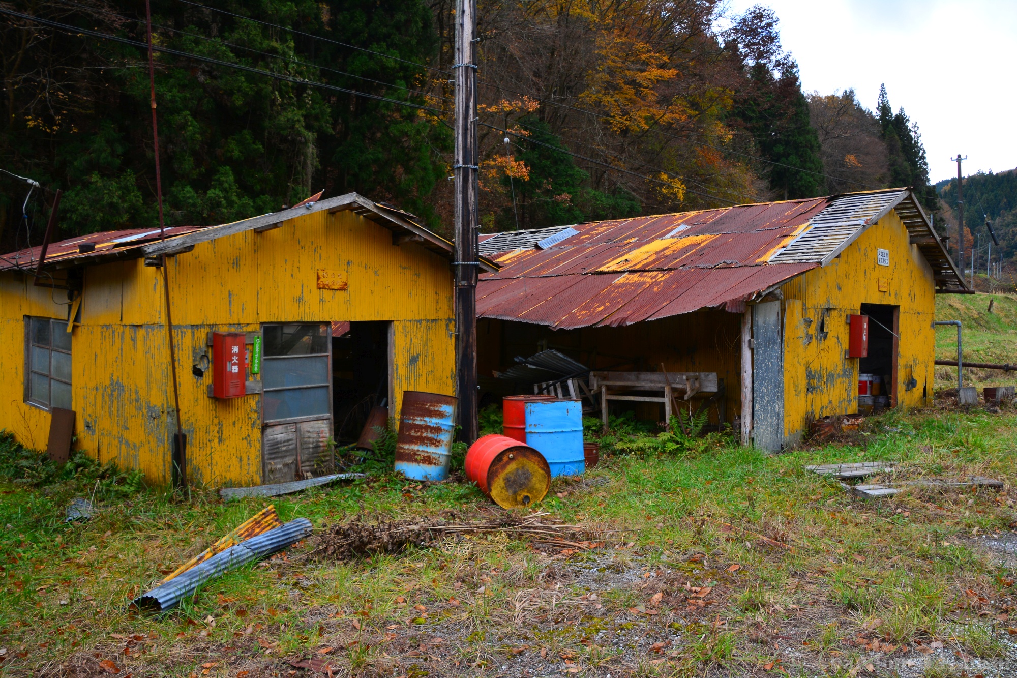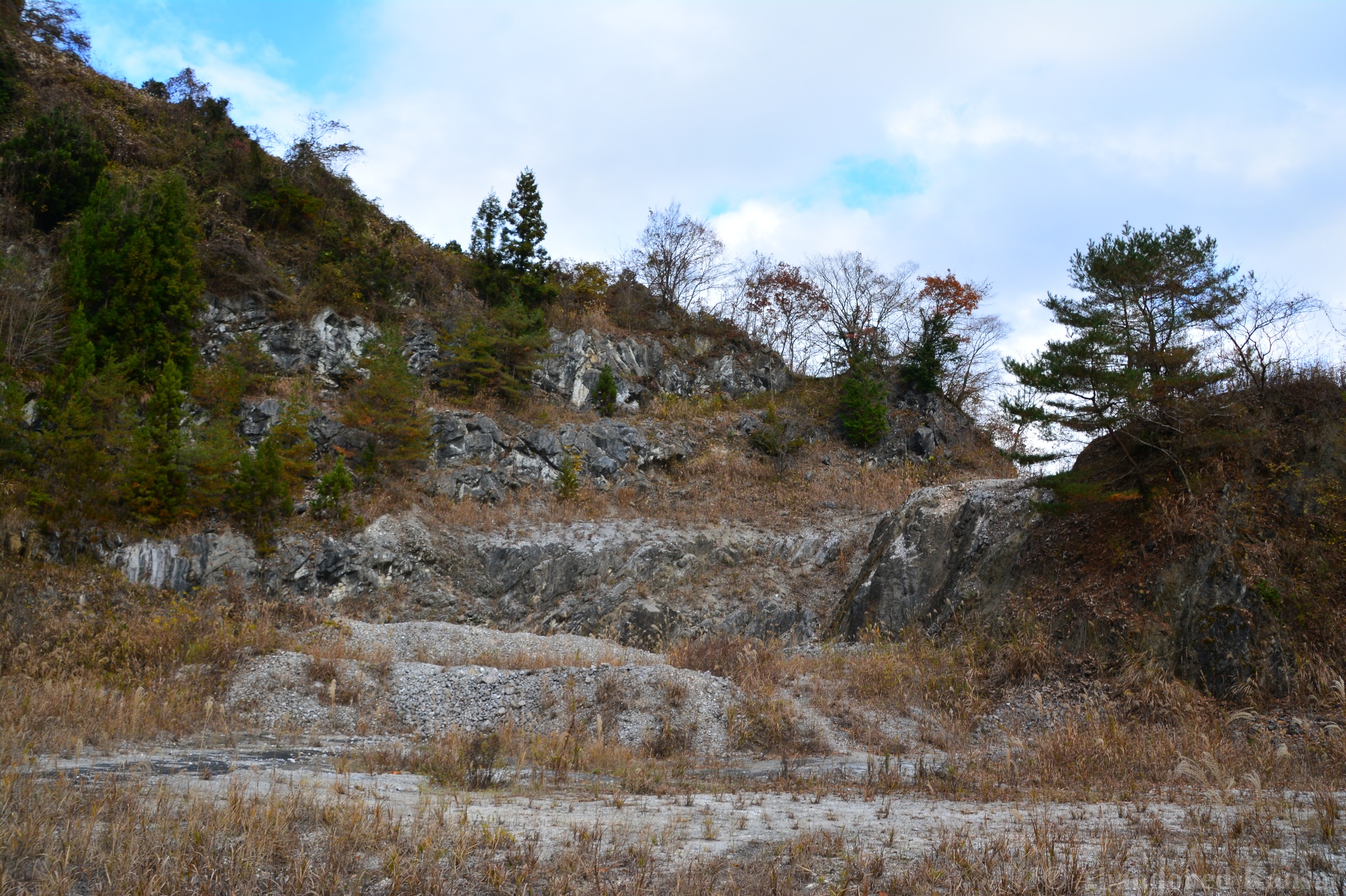 The Tohoku Quarry was a beautiful exploration, but not a very eventful one – we drove up to the place and there were no fences or security, just a rope to prevent vehicles from entering (and dumping large amounts of trash, which is a real problem in the Japanese countryside!). The power supply equipment was protected by a large metal cage, nearby were a couple of huts used for storage and as an office / large break room. A large stone processing plant that was able to load trucks was built into the slope; the quarry itself was at the upper end, of course. It was a beautiful sunny autumn day, and we were exploring mostly outdoors, out of sight and out of sound of civilization – exactly my kind of location. Nothing to worry about, just exploring a naturally decaying industrial site. The place kind of reminded me of the *Takarazuka Macadam Industrial Plant* from almost 10 years ago – a classic site that is not accessible anymore, unfortunately.