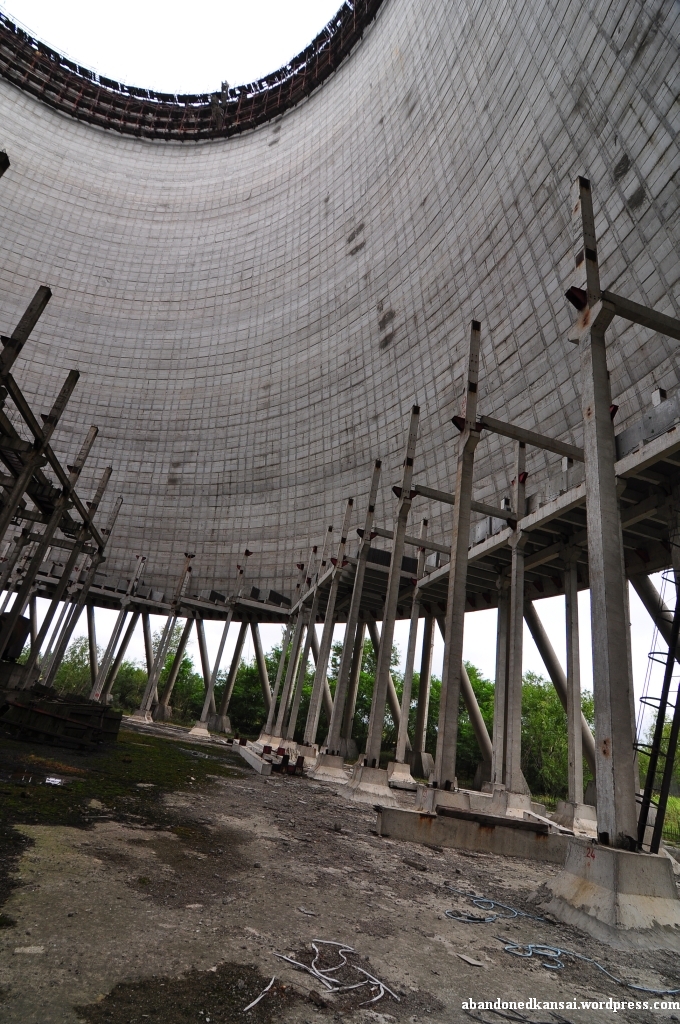 I walked the 30 meters from the street to the cooling tower and entering the giant open hyperboloid structure almost was like entering a cathedral – even if you are not into the purpose of the building the architecture is still mind-blowing, especially when looking up. And then it hit me: I was actually standing in the half finished cooling tower of a nuclear power plant, only 2.5 kilometers away from where one of the biggest man-made catastrophe in history happened! A very humbling, fascinating and knee-softening moment.