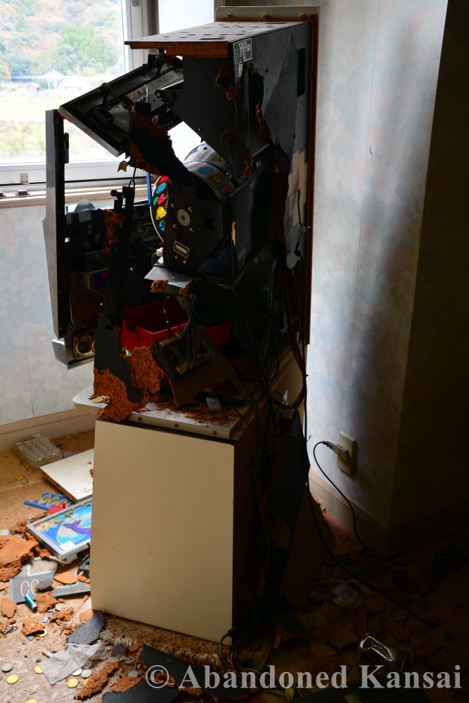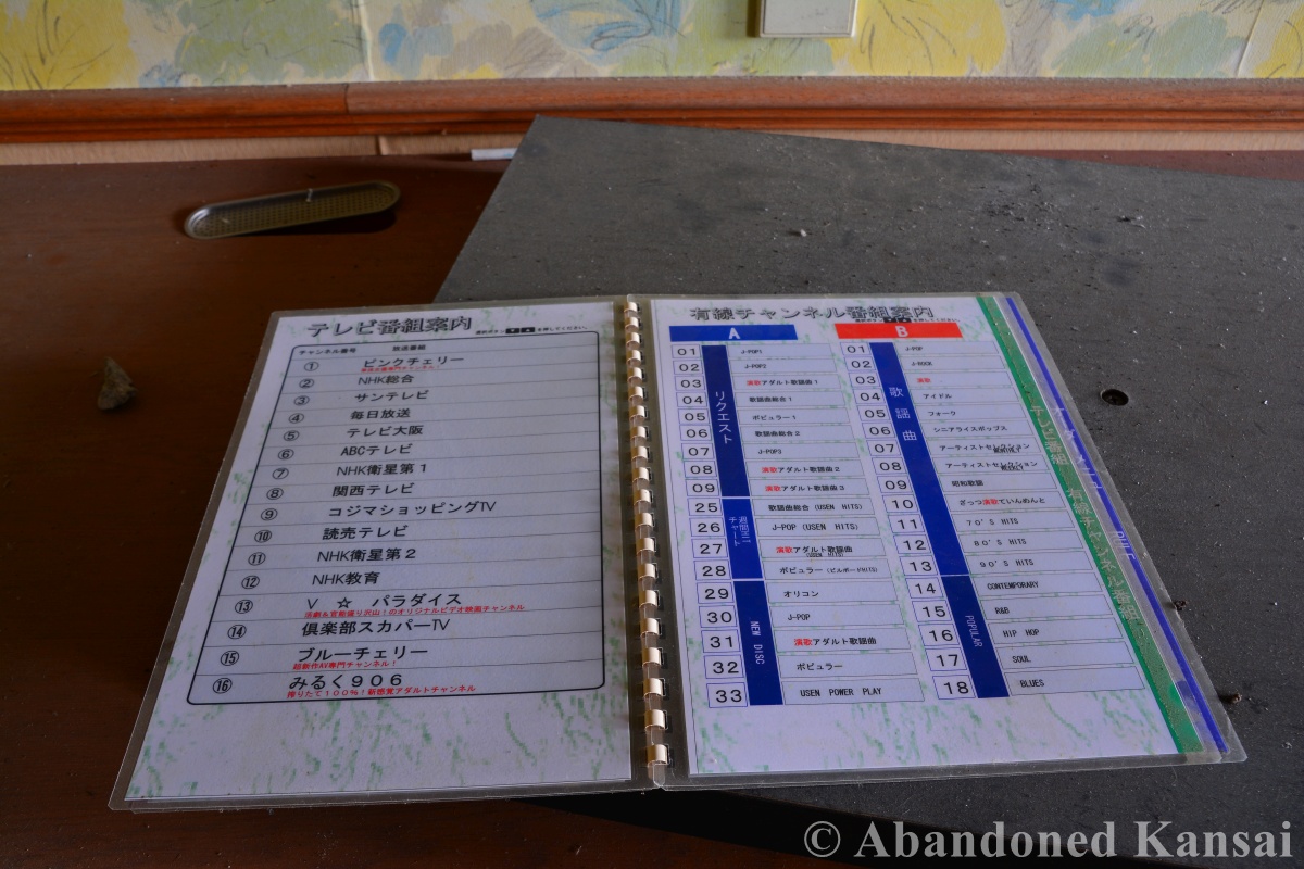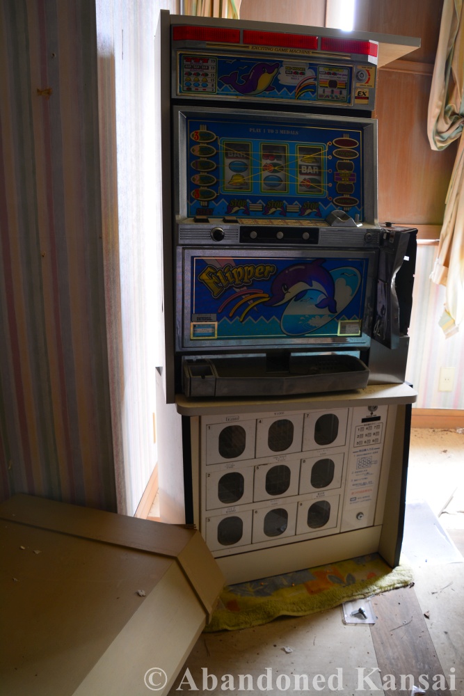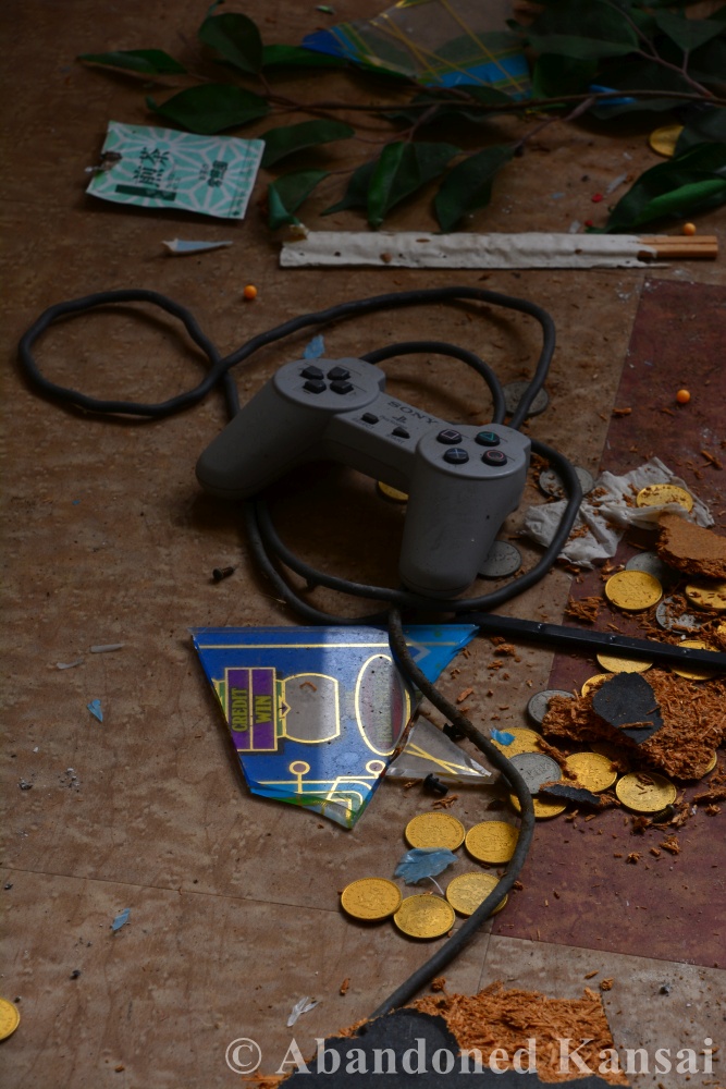 The Awaji Island Love Hotel was a rather unspectacular one. No exotic name, no exotic rooms, but plenty of vandalism. Some rooms were equipped with slots machines and I found a PlayStation controller and a Famicom with controller – both as retail versions, not the rather rare lease versions for hotels; though the latter gave me bad “China Says” vibes. Overall a rather unpleasant exploration, as abandoned love hotels often are. But hey, I came all the way from across the bay and over the spectacular Akashi-Kaikyo Bridge, so I did the dirty deed and took some photos before I left. I hope you’ll enjoy them.