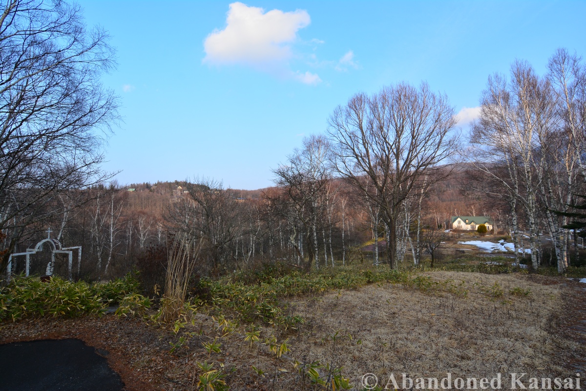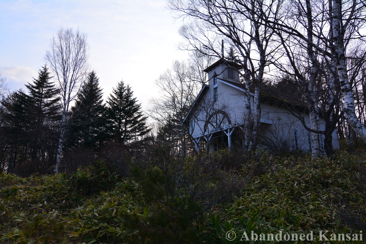 The sun was already setting when we finally arrived at the Nagano Wedding Church, somewhere deep in the Japanese Alps. Much to our surprise there were still some patches of snow on the ground, which, along with the birch trees and some other vegetation, gave the whole area a very Hokkaido vibe – and that’s always a good thing in my book, given that Hokkaido is one of my favorite prefectures. Unfortunately that also meant that we were running out of time soon, making indoor shots impossible quickly and outdoor shots rather unpleasant. Midday this would have been a wonderful exploration, but under the given circumstances, it was an easy, but rushed one. The church was actually part of a resort complex that started with a lease system in 1974 – when the owners weren’t there, they could rent it out and get 50% of the lodging fee, kind of making it an early Airbnb, I guess. The 123 units were able to host up to 300 guests, supported by two restaurants, a bar, a heated pool, a sauna, several tennis courts as well as a beauty clinic. Around the turn of the century the complex was renovated and turned into a dieting resort, which in Japan at the time sounds like a recipe for disaster. And so the thing was shut down about ten years later – though 40 years of business isn’t a bad thing in a country where you can punch through a lot of walls and where mold is almost guaranteed after a while, unless you take really good care of your building. Needless to say that there was absolutely no time to explore any of these, but you can still see some elements in the background of a few photos.