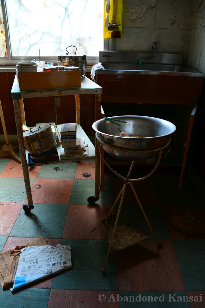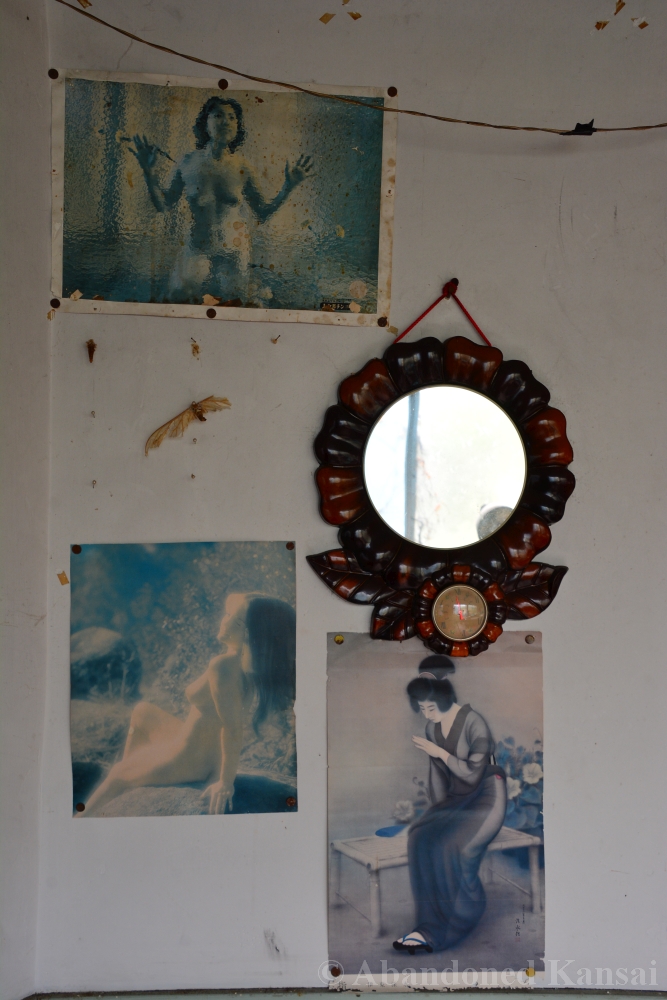 Exploring an abandoned rotenburo is quite a different experience though – no dangling jewels, no hot water… and you are still in the middle of the exhaustion part of the day. The rotenburo (an outdoor hot spring, clothing usually not optional, but strictly forbidden) I had in mind when writing the previous paragraph was part of a large spa hotel somewhere in Kansai and offered spectacular views of the valley below, especially on that hot sunny spring day a few years back. Before I got to this though I had to walk through a whole abandoned hotel, which is not exactly my favorite thing to do, as most of you know by now. I found an open door in the back of the hotel, right next to the surprisingly unspectacular outdoor pool. But then again: How much use can you get out of an outdoor pool in the mountains of Kansai? 2 months a year? And who wants to use it even then, when there are much nicer options both indoor and outdoor?