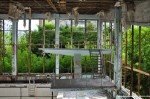 We entered the Jupiter Factory, one of the biggest employers in Pripyat, through the main gate and passed by some administration buildings. Since the site is located at the western city limit of Pripyat nature is taking over the area rather quickly. The streets on the premises were partly overgrown with climbers, some of them even seemed to be some kind of grapes. None of us tried them though, for obvious reasons.