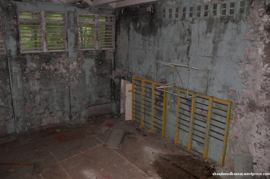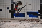 Since I took some outdoor pictures first I lost contact with the other guys even before entering the building. The entrance area looked pretty run-down and vandalized, so I made my way up the first staircase I saw – it was covered in plastic sheeting, now scruffy and cracked. Public baths, especially in Japan where I currently live, are supposed to be spotlessly clean, but of course Azure was in as bad shape as the rest of the city and therefore the building felt even a little bit more depressing. The rather small gymnasium wasn’t nearly as impressive as the huge one with the great view at the Palace of Culture, but the swimming pool itself was quite a sight, even without having played the previously mentioned video game.
