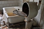 Thanks to the time restraint I was only able to see one of the floors of one of the departments, maybe a tenth of the building, but it was nevertheless amazing. Almost every room, every corner had something interesting to offer. There were surgical instruments, bedpans, gynecological examination chairs, bathtubs, whole boxes of medicine, posters and signs with medical explanations (including explicit pictures) and much, much more. At the end of the hallway were several rooms with rusty baby beds, a really uncomfortable sight. The lighting that day contributed a lot to the atmosphere and made it very difficult to take pictures – never before I wished more that I had a tripod! Since I was in a hurry I cranked up the ISO and took photos while quickly exploring the rooms along the hallway – and on the way back I filmed about two thirds of the floor with my video camera. Sorry that parts of the video turned out to be a bit blurry, but there was no time for re-shooting; just consider it part of the atmosphere…