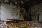 The gas masks were where once the cafeteria must have been as a kitchen was right next to it. From there I could get outside to an inner courtyard, but the floor outside was in really bad shape, so I didn’t risk a broken ankle and stayed inside. While the other guys already moved on to other parts of the building I went up one floor where I found the piano rooms and several class rooms. Parts of the floor were covered with books and documents up to 20 centimeters high, a really sad sight. It’s said that the powers that be systematically destroyed the interior of the buildings in Pripyat to discourage looters from entering the Zone Of Alienation – but it was nevertheless unpleasant to see printed knowledge been treated like that. Who would steal school books anyways?